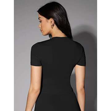 Show moreIntroducing the **SOLY HUX Women's Casual Short Sleeve Round Neck Crop Tee**, a stylish essential for your wardrobe. Perfect for those looking to blend comfort with casual chic, this slim-fit tee is designed to elevate your everyday style. Made with a soft fabric blend, it offers breathability and comfort, making it an ideal addition whether you're lounging at home or on the go. The classic round neck and short sleeves provide versatility, allowing you to pair it effortlessly with high-waisted jeans, skirts, or even workout gear for an athleisure look. Available in Black and a range of sizes, this crop top is both flattering and functional.