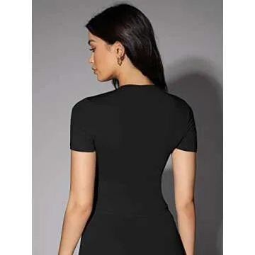 Introducing the **SOLY HUX Women's Casual Short Sleeve Round Neck Crop Tee**, a stylish essential for your wardrobe. Perfect for those looking to blend comfort with casual chic, this slim-fit tee is designed to elevate your everyday style. Made with a soft fabric blend, it offers breathability and comfort, making it an ideal addition whether you're lounging at home or on the go. The classic round neck and short sleeves provide versatility, allowing you to pair it effortlessly with high-waisted jeans, skirts,...