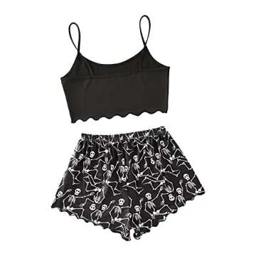 The cami top boasts a stylish spaghetti strap design, enhanced by a lovely lettuce trim, providing a modern twist on traditional pajamas. The matching shorts complete this set, offering not just comfort but also a fashionable look for lazy days or relaxing nights. Whether you’re snuggling up on the couch or drifting off to dreamland, this outfit ensures you do so with flair.