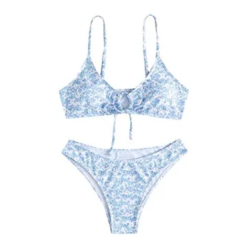 Show moreEmbrace the summer spirit with our exquisite SOLY HUX Women's Floral Print Tie Front Bikini Bathing Suit, a delightful blend of style and functionality. This two-piece swimsuit is designed to turn heads with its beautiful blue and white floral print, perfect for sun-soaked adventures by the pool or beach. Crafted from super soft, stretchy fabric, it hugs your curves in all the right places, ensuring you feel as amazing as you look. The standout feature, a chic tie front, not only enhances your silhouette but also adds a fashionable touch that sets this bikini apart from the rest.