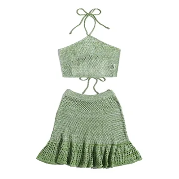 SOLY HUX Women's Halter Top and Ruffle Hem Skirt Set - Chic Green Swim Cover Up