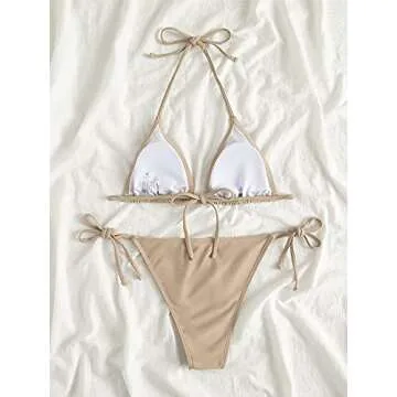SOLY HUX Women's Halter Top Two Piece Swimsuit Tie Side Triangle Bikini Pure Khaki M