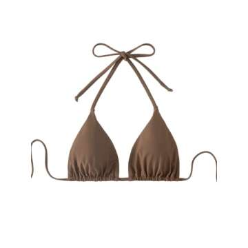 SOLY HUX Women's Halter Triangle Bikini Top Tie Back Bathing Suit Top Sexy Swimwear for Women Solid Coffee Brown S