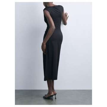 Show moreIntroducing the exquisite SOLY HUX Women's High Split Sleeveless Midi Dress, a perfect blend of style and comfort designed for the modern woman. This elegant cocktail dress features a unique ring linked detail and a flattering boat neck that adds a touch of sophistication to your look. Crafted with a medium-stretch fabric, this dress not only hugs your curves beautifully but also ensures a comfortable fit that is skin-friendly. The high split design gives it a daring yet classy appeal, making it perfect for various occasions.