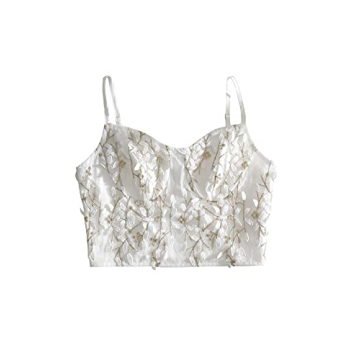 SOLY HUX Women's Lace Sequin Spaghetti Strap Zipper Back Detail Cami Croptop White M