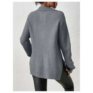 Show more Introducing the stunning half zip long sleeve drop shoulder ribbed jumper sweater – the perfect blend of style, comfort, and versatility. This exquisite piece, crafted from soft ribbed knit fabric, boasts a slight stretch to ensure a perfect fit without sacrificing comfort. The unique design features a split hem and a collared neck, offering an effortlessly casual yet stylish look that’s ideal for any wardrobe.