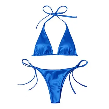 Show moreIntroducing the stunning SOLY HUX Women's Metallic Halter Top Two Piece Swimsuit, a must-have for your summer wardrobe. Crafted from a premium blend of materials, this bikini showcases a captivating metallic finish that glistens under sunlight, ensuring you stand out on the beach or by the pool. The triangle bikini top features an adjustable halter neck that provides excellent support while enhancing your natural curves. The tie-side bottoms not only offer a perfect fit but also add a touch of playful charm to the ensemble. Available in a striking royal blue shade, this swimsuit is designed to accentuate your style and confidence. Get ready to make waves with a look that is both trendy and flattering!