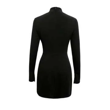 Show moreIntroducing the SOLY HUX Women's Mock Neck Long Sleeve Mini Dress, where elegance meets comfort in a luxurious design. Crafted from soft and comfortable fabric, this mini dress ensures you feel as good as you look. Featuring a stand collar and long sleeves, it’s perfect for layering in the fall while offering a chic silhouette with its a-line cut and flared hem. The thoughtful flap detail adds a unique touch that elevates this dress from ordinary to extraordinary. This pure black dress transcends trends with its versatility, making it a staple in your wardrobe.