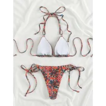 Feature: Halter, tie back, triangle, tie side, paisley print, swimsuit women, fashionable