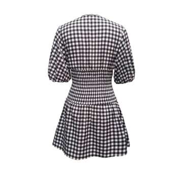 Feature: V neck, wrap, half sleeve, lantern sleeve, shirred, summer dresses for women, fashionable