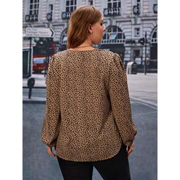 Show moreIntroducing the SOLY HUX Women's Plus Size Allover Printed Notched V Neck Long Sleeve Casual Blouse Tops in a stylish camel print! This beautifully designed blouse strikes the perfect balance between casual comfort and fashionable flair, making it an essential addition to any modern woman's wardrobe. Crafted with soft, high-quality fabric, this blouse is not only visually appealing but also incredibly comfortable for all-day wear. With its long sleeves and notched neck, it offers a chic silhouette that looks fantastic whether you're at work or enjoying a weekend getaway.