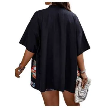 Feature: Short sleeve, floral print, open front, elastic waist, plus size, fashion 2 piece outfit for women, simple and casual style