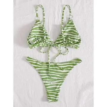 Get ready to turn heads this summer with the **SOLY HUX Women's Print Tie Back Triangle Bikini** in a striking green zebra pattern. This 2-piece swimsuit impeccably combines comfort, style, and a playful edge, making it a must-have for beach days, pool parties, or lounging in the sun. Crafted from high-quality fabrics, the bikini promises durability and a perfect fit that enhances your natural curves. The adjustable tie-back feature ensures a customized fit, delivering both support and flexibility that caters...