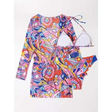 Show moreIntroducing the ultimate swimwear solution for those looking to combine style, comfort, and coverage: our all-new Vibrant Mesh Swimsuit and Cover-Up Combo by SOLY HUX. This stunning three-piece swimsuit set includes a beautifully printed triangle halter bikini and an adjustable cover-up, designed with a keen eye for detail to provide you with the perfect blend of fashion and function. The vibrant colors and striking patterns cater to every skin tone, ensuring confidence and beauty at the beach or poolside, while the high-quality, durable material guarantees longevity for all your summer adventures.