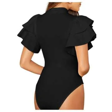 SOLY HUX Women's Ruffle Mock Neck Butterfly Sleeve Skinny Bodysuit Black XL