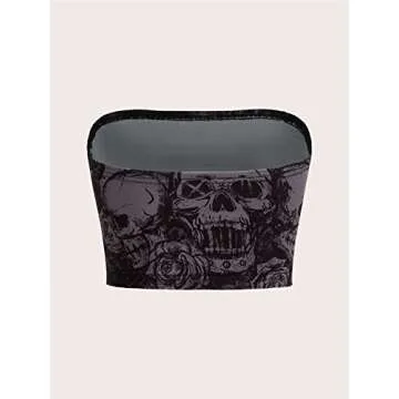 SOLY HUX Women's Skull Floral Print Tube Crop Top - Sleeveless Strapless Bandeau Y2K Style
