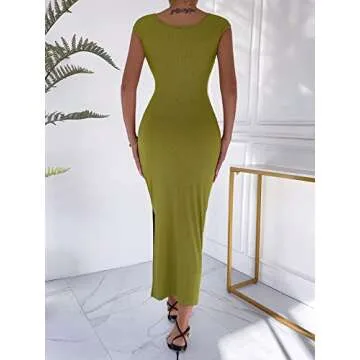 SOLY HUX Women's Sleeveless Deep V Neck Twist Front Cut Out Split Hem Bodycon Dress Olive Green S