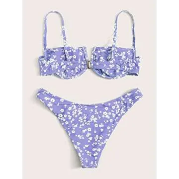 SOLY HUX Women's Spaghetti Strap Floral Print Bikini Bathing Suits 2 Piece Swimsuits Purple M