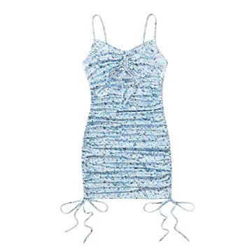 Step into summer with style in the SOLY HUX Women's Spaghetti Strap Floral Print Bodycon Mini Slip Dress. This enchanting light blue dress features a beautiful ditsy floral print, perfect for showcasing your femininity and flair. Crafted from a lightweight, breathable fabric, it ensures comfort and a flattering fit, making it an ideal choice for warm weather. The spaghetti straps elegantly highlight your shoulders, while the bodycon silhouette accentuates your curves without sacrificing mobility....