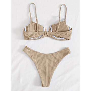 SOLY HUX Women's Spaghetti Strap Underwire Bikini High Cut Bathing Suit 2 Piece Swimsuits Apricot S