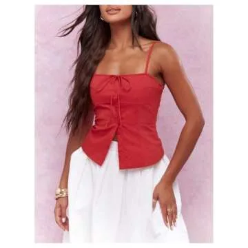 Introducing the **SOLY HUX Women's Tie Front Button Down Cami Top**, an exquisite blend of style and comfort ideal for the modern woman. This **Y2K-inspired spaghetti strap bustier** features a trendy tie front and a stylish button-down design, making it the perfect addition to your wardrobe. With its **soft and comfortable fabric**, you can enjoy a relaxed fit while staying fashionable. Its **sleeveless corset top** silhouette ensures you can wear it for various occasions—from casual outings to chic night...