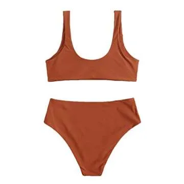 SOLY HUX Women's Triangle Top High Waisted Bikini Bathing Suit 2 Piece Swimsuits Rust Brown Plain S