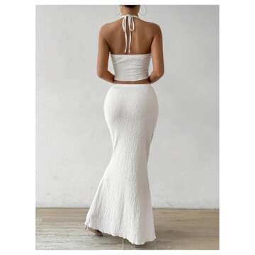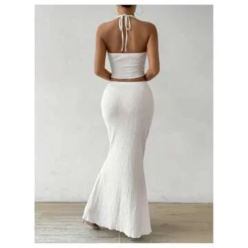 Show moreExplore the perfect blend of style and comfort with the SOLY HUX Women's Two Piece Outfits Twist Front Halter Cami Tops and Skirt Summer Set. This chic ensemble is made from a high-quality, soft fabric that features a medium stretch, ensuring you feel relaxed and fashionable all day long. The set includes a halter neck cami top with a trendy twist front and a matching bodycon long skirt that flatters your silhouette beautifully. Whether you're on a casual outing or heading to a holiday party, this plain white set is versatile enough to suit all occasions.