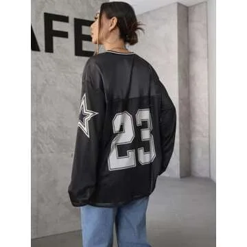 Features: Letter print, v neck, long sleeve, drop shoulder, oversized tshirts for women, loose fit, fashionable