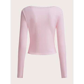 Show moreStep into the world of Y2K fashion with the SOLY HUX Women's Y2K Long Sleeve Tops. This stunning piece is designed to elevate your everyday wardrobe with its sleek and fashionable silhouette. Crafted from a soft ribbed knit material, it gently hugs the body to create a slim-fitted look that flatters all shapes. The scoop neck adds a delicate touch, while the exquisite lace trim elevates this top from basic to beautiful, perfect for making a stylish statement whether you're headed to class or out with friends.