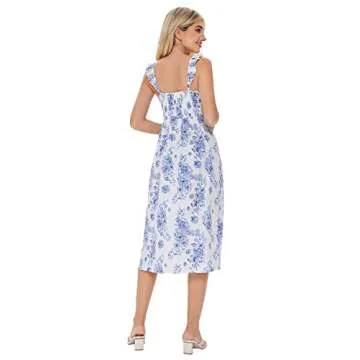 🌸 Womens Floral Midi Dress Square Neck Summer Boho Dresses Fitted Sundress with Slit