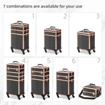 Show moreIntroducing the Somduy Rolling Makeup Case, an innovative 5-in-1 Makeup Travel Case designed with professionals in mind! This versatile train case allows you to customize your organization for makeup, beauty tools, and cosmetics to perfectly fit your needs. Featuring four detachable compartments, you can transform this case to create your perfect setup, utilizing the top compartment as a portable makeup box or removing the middle and bottom compartments for maximum accessibility. Tailored for both simplicity and sophistication, this case is a must-have for anyone passionate about beauty.
