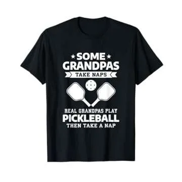 Show moreIntroducing the Some Grandpas Take Naps Real Grandpas Play Pickleball T-Shirt – the perfect blend of humor and passion for the game of pickleball! This delightful tee not only celebrates the spirited nature of grandfathers who love to stay active but also serves as a conversation starter for fellow players and enthusiasts alike. Made with breathable, lightweight fabric, this classic fit shirt ensures maximum comfort while you smash, serve, and socialize on the court. Crafted by a leading brand known for its innovative sports apparel, it delivers unmatched quality and durability, making it the ideal choice for both competitive tournaments and leisurely matches with family and friends.