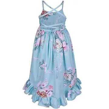 Somlatrecy Vintage Floral Flower Girls Dress Pure Cotton Backless Straps/Sling for Wedding Birthday 1-12 Years (10, Blue)