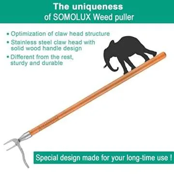 Show moreThe SOMOLUX 45'' Weed Puller is not just another gardening tool; it's a revolutionary approach to weeding that significantly reduces strain on your body while enhancing efficiency. Its ergonomic design allows you to remove unwanted weeds without bending or kneeling, making it an ideal choice for gardeners of all ages and abilities. Crafted with a durable stainless steel claw head and a robust wooden handle, this weed puller assures longevity and performance in all soil types. Plus, with no assembly required, you can get straight to work upon arrival!