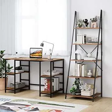 SOMY 5-Tier Bookshelf, Wood Bookcase with Metal Frame, Open Ladder Shelf, Flower Standing Shelf Units Storage Rack for Home Office Living Room Bathroom Vintage, Rustic Brown