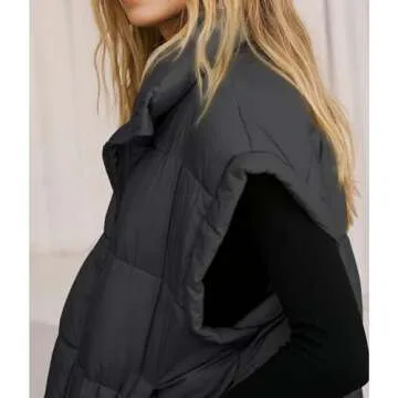 Show more Introducing the oversized puffer vest for women, your ultimate companion for chilly days and a stylish wardrobe staple. This sleevless, full zip vest features a stand collar and drop shoulder design, allowing for effortless layering. With two side hand pockets and an adjustable drawstring hem, it perfectly blends comfort with utility. Crafted from a lightweight, quilted padded material, this vest is designed to keep you warm without compromising on style.