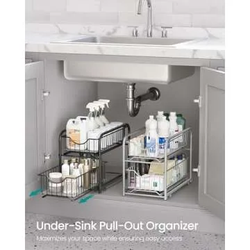 Why You will Love This Product? The SONGMICS 2-Tier Pull Out Organizer does more than help you store items; it transforms your space. By providing easy access to everyday essentials, it helps eliminate the frustrating search for misplaced items. Imagine a tidy, organized kitchen or bathroom where everything you need is just a pull away! With its sleek ink black finish, this organizer not only serves a functional purpose but is also an aesthetic improvement to your home decor.
