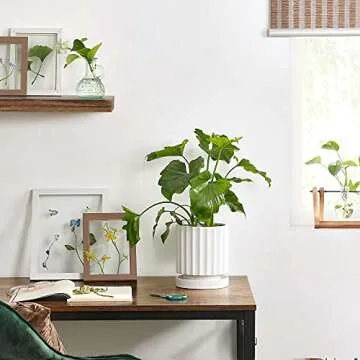 SONGMICS Ceramic Planter, White Flower Plant Pot Indoors, 6.1-Inch Round Modern Ceramic Plant Pot with Drainage Hole and Saucer, Indoor Decor ULCF031W01