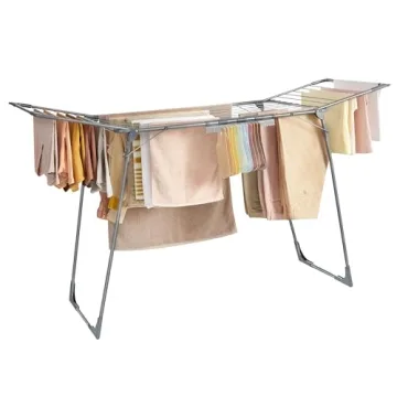 Show more Meet the ultimate solution for all your laundry drying needs with the SONGMICS Clothes Drying Rack. Crafted from premium metal, this gullwing-style rack combines sturdiness with convenience, delivering a stable and trustworthy platform for hanging clothes. With an expansive 59 feet of drying space and the ability to hold up to 40 pounds, it accommodates everything from delicate fabrics to bulky towels without wobbling or bending. Say goodbye to cramped laundry days and hello to efficient drying!
