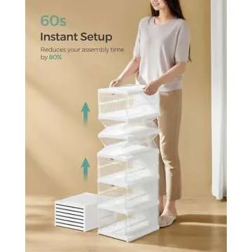 Show more Introducing the ultimate solution for shoe organization: our innovative integrated shoe organizer! With an impressive setup time of just 60 seconds, you can say goodbye to chaotic closets and hello to a brilliantly organized space. This remarkably efficient design facilitates an astonishing 80% reduction in the usual assembly time, making it perfect for those who value convenience without sacrificing quality.