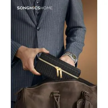 SONGMICS HOME RONNE Collection - 3-Slot Mens Jewelry Box, Watch Travel Case, PU Leather Watch Box, 3.9 x 7.9 x 3.5 Inches, Gift Idea, Ink Black Surface, Ink Black Lining UJWB017B01