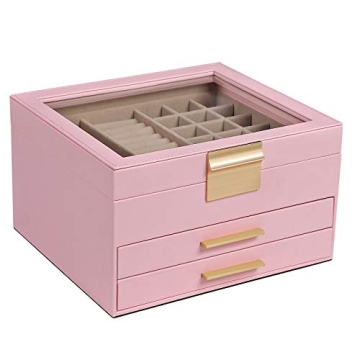 SONGMICS Jewelry Box with Glass Lid - Elegant 3-Layer Jewelry Organizer