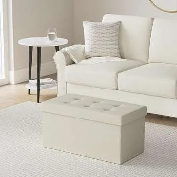 SONGMICS Mazie Collection 30 Inches Folding Storage Ottoman Bench - Cream White