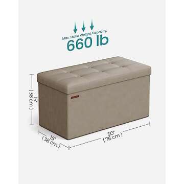 SONGMICS Mazie Collection - 30 Inches Folding Storage Ottoman Bench, Ottoman with Storage, Foot Rest Stool, Load 660 lb, for Living Room, Synthetic Leather, Camel Brown ULSF040R01
