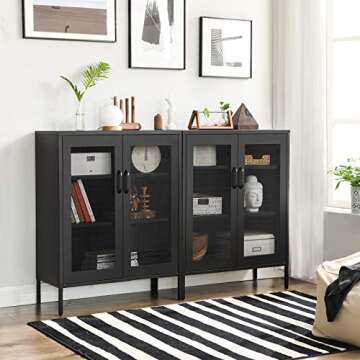 SONGMICS Metal Storage Cabinet with Mesh Doors, Steel Display Cabinets with Adjustable Shelves for Bathroom Home Office, Black UOMC002B01