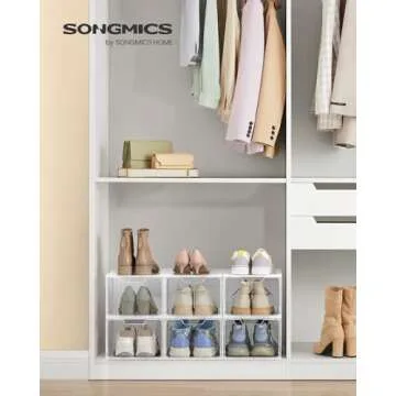 Why You will Love This Product? Embrace a clutter-free home with the SONGMICS Shoe Boxes, where organization meets elegance. Enjoy the peace of mind that comes from knowing your shoes are neatly stored and perfectly displayed, enhancing your daily routine. Transform your morning madness into a visually pleasing experience as you step out confident in your style!