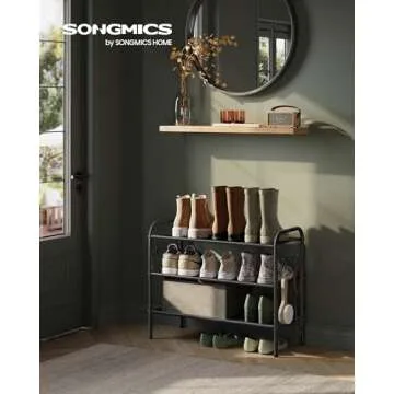 Show more Introducing the SONGMICS Shoe Rack, a smart solution to your shoe clutter that redefines shoe organization. This stylish and functional 3-Tier Shoe Organizer is crafted for versatility, accommodating a generous capacity of up to 12 pairs of shoes. Its height-adjustable shelves are designed to perfectly fit various shoe sizes—from sneakers to elegant heels—making it an indispensable item for any shoe lover.
