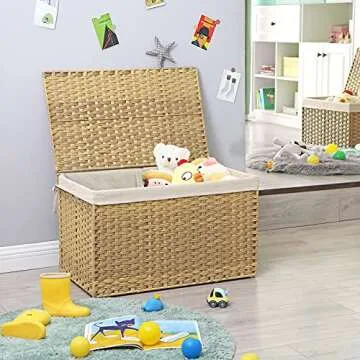 Show more Introducing the SONGMICS Storage Basket with Lid, a perfect blend of style and functionality that caters to all your storage needs. This spacious storage bin boasts a generous capacity of 42.3 gallons (160L), making it ideal for everything from blankets to off-season clothing. Crafted from sturdy PP rattan, it not only enhances your decor with its natural woven design but also effectively keeps dust and odors at bay with its easy-to-open lid. Whether you place it next to your sofa or in your bedroom, this basket is designed to seamlessly integrate into your home.
