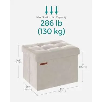 SONGMICS Cream White Foldable Storage Ottoman - Stylish & Practical