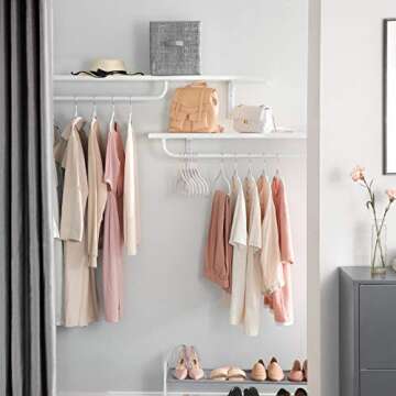 Show moreTransform your closet into a chic and organized space with the **SONGMICS Velvet Hangers 30 Pack**! These extraordinary hangers are not just designed to hold your garments but to pamper them. Crafted with a soft velvet surface, they provide a gentle touch that your clothes will love, ensuring that they remain in pristine condition while hanging securely. With a sleek and modern aesthetic, featuring *rose gold-colored swivel hooks*, these hangers perfectly blend elegance and functionality, catering to your wardrobe's needs while elevating its visual appeal.